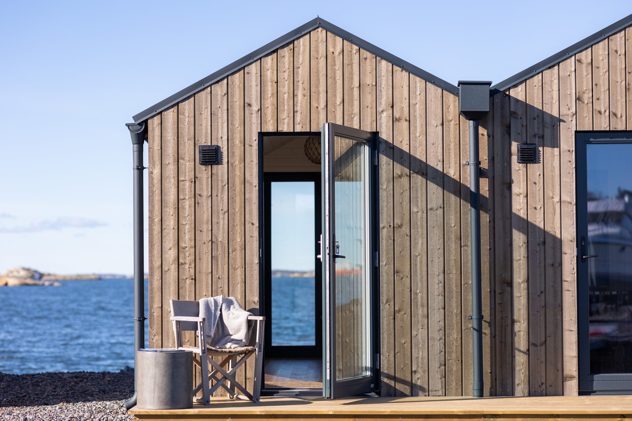 De höga sjöbodarna på Killingsholmen erbjuder en oslagbar panoramautsikt över skärgården. Här får du känslan av att sväva över vattnet, med stora fönster som släpper in massor av ljus och en öppen planlösning. Perfekt för dig som vill kombinera båtlivet med en stilfull sjöbod med alla bekvämligheter nära till hands!
